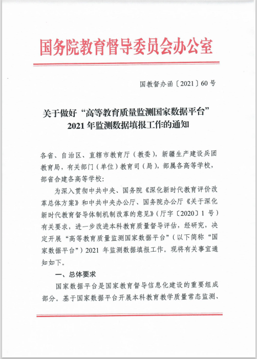 关于做好“高等教育质量监测国家数据平台”2021年监测数据填报工作的通知