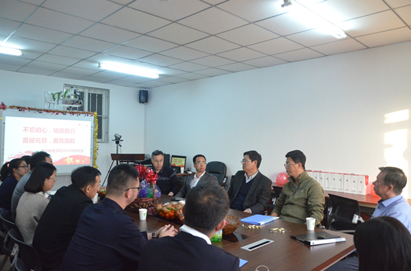 新闻网讯(通讯员李守瑶 殷浩宇)为丰富学院教职工文化生活,总结2017、迎接2018,买球官方网站于2018年12月29日在学院会议室举行了“不忘初心、砥砺前行、喜迎元旦、爱在国教”主题新年联欢会。买球官方网站全体教职工参加,李占国副校长也作为嘉宾出席了买球官方网站新年联欢会。